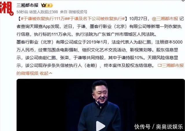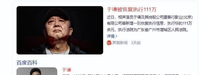 事情的起因是一则法院的消息:10月27日,广东省广州市增城区人民法院恢复了对于谦执行111万余元的案件。消息一出,全网炸锅。有说“看错了”的,有问“怎么可能”的,还有直接甩出质疑:“于谦这种身家过亿的人,会差这一百万?”直到天眼查截图亮出“实锤”,大家才意识到,这事儿不是闹着玩的。